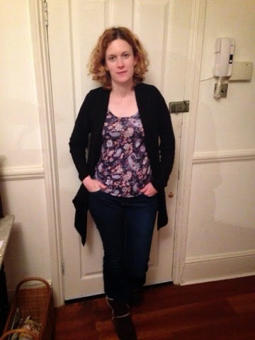 Renfrew top (I have three of these now and for some reason none of them have made it to the blog). This is a v-necked version. I am also wearing a cowl that my Tante Odile made for me (I know this is not me-made but it was handmade by someone I know). Also worn with jeans (Asos) and the aforementioned Dunnes cardigan.